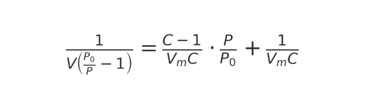 من خلال تركيب معادلة BET خطيًا، يمكن الحصول على الميل (k) والتقاطع (b)، ويمكن حساب ما يلي: